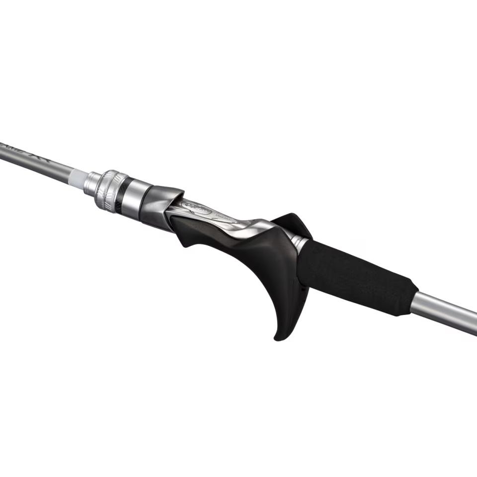 タッチドライブスピードロックを搭載する電動リールとライトゲームXRのXシートテクニカルガングリップの組み合わせは、グリップの優れた安定性とフロントトリガー部に指を掛けることによってもたらさせる操作性により、電動リールであっても確実にホールドしつつ親指が自由に動く余裕を生み出し、より精密な巻き上げ操作を可能にします。