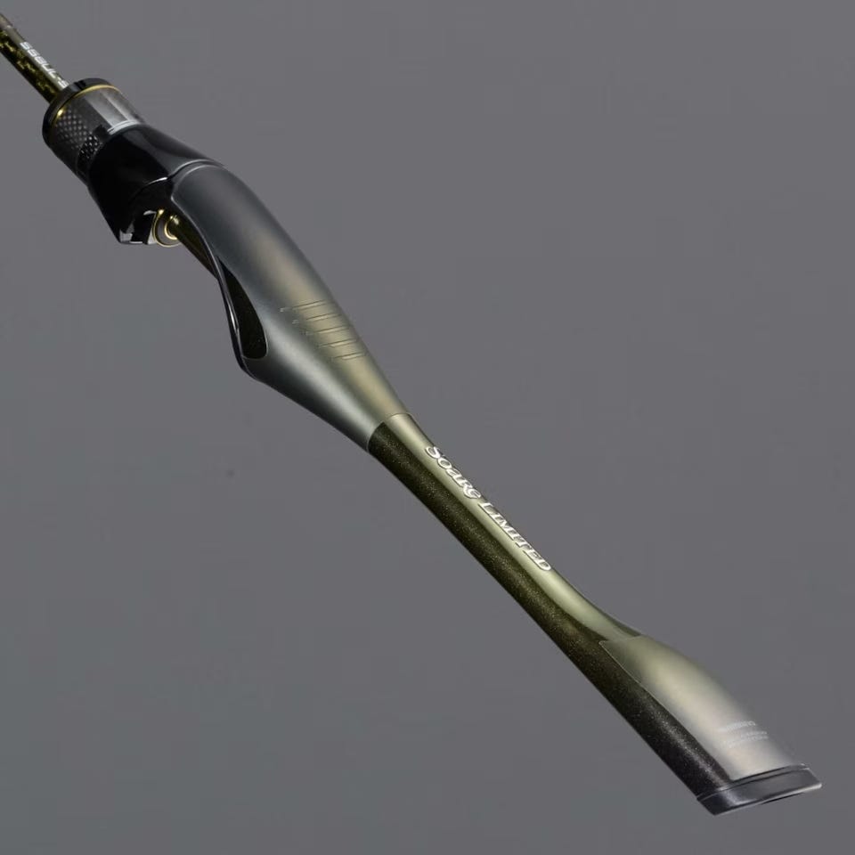 アングラーとロッドの接点であり、感度や操作性にも大きく関わるグリップにもとことんこだわっている。常識を覆す先進のテクノロジーによってその性能を追及。「ソアレ リミテッド」に採用されているのは、新型のブリッジライクシートとフルカーボンモノコックグリップ。フルカーボンモノコックグリップは、リールシート後方からリアグリップまでを中空一体成型で創り上げた新次元のグリップ構造である。ティップから入力された振動の伝達を阻害する要因を徹底追放し、一般的なセパレートグリップとの比較では振動伝達率が飛躍的に向上している。ブリッジライクシートは形状を一新。グリップ部は太くしつつも軽量化。段差を無くし手のひらにあたる部分は滑らかな形状に進化した。フルカーボンモノコックグリップとの融合により、操作性や感度はさらなる高みへ到達。強度と感度を追い求めて辿り着いた無駄のないデザインは、レーシングカーを想起させる機能美を備え、アジをイメージしたグリーンゴールドのカラーリングは高級感溢れる仕上がりで、所有する喜びを刺激する。