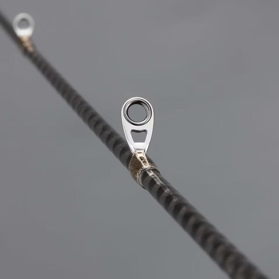 感度への追求はガイドの性能やセッティングにおいても、細かな検証が繰り返された。その結果、導き出された答えがフルXガイドのセッティング。Xガイドとは、軽さ、トラブルレス、キャスト性能を高次元に融合させたシマノオリジナルの高性能ガイドで、ブランクスが備える能力を十二分に引き出すために誕生。取り付け位置やタイプにもこだわり、Xガイド3Dチタントップ+3Dチタン、そしてエアロという組み合わせを採用。トップガイドはスレッドすら廃し、すべてが圧倒的な感度を実現するための仕様となっている。