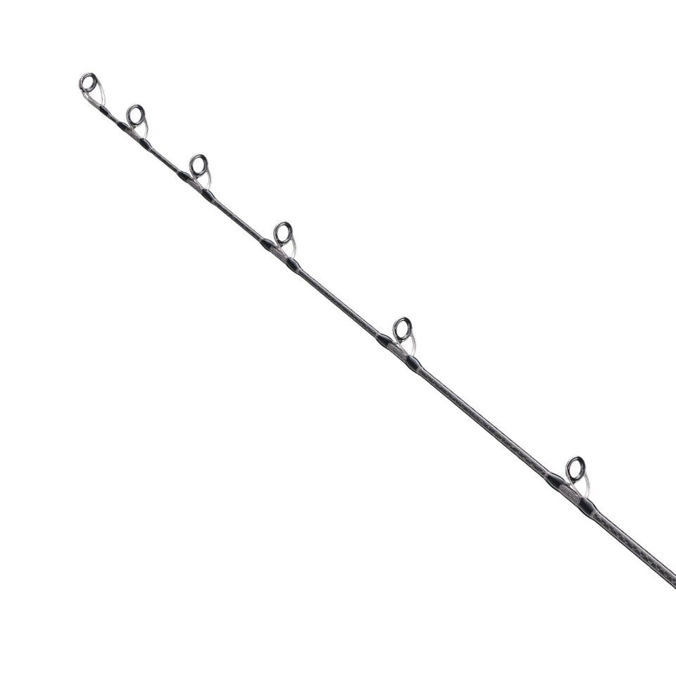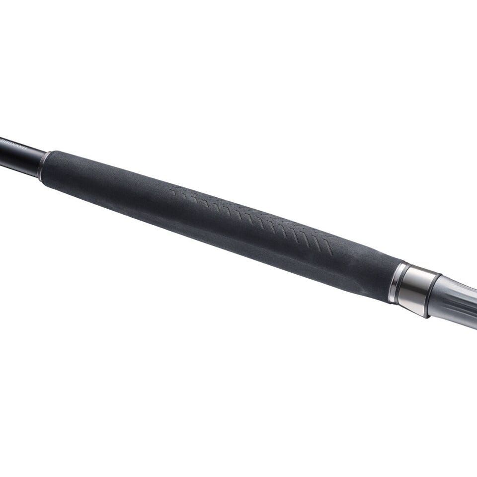 過酷なロックショアに判然たる意志で挑み、夢を渇望するアングラーに捧げるビッグゲームロッド。レコードフィッシュをバイトに持ち込むための「操作性」、不屈の「高強度」、最高レベルの「パワー」、アンバランスなラインシステムに対する「トラブルレス性能」など、ハードワークが要求されるビッグゲームロッドの性能を徹底追求。豪快さと繊細さの融合を求めて[並継]・ [ステップレングスデザイン]を採用し、#1はソフトティップ設計を採用。あらゆる変化のタイミングを掴みやすく、また短くすることで軽快性とレスポンスを向上。#2は硬さのギャップがある#1と#3をスムーズに荷重移行させるセクション。#3は太径・高剛性化することで体幹を強化し、モンスターサイズとの真っ向勝負のパワーファイトをサポート。離島遠征への利便性のみを意図した3ピース設計にあらず、高次元の強度とバランスを実現。また、MAXリールサイズ:SW18000番、PE:8~10号を想定したタックルシステムに対応するために新規サイズの[Xガイドタッチフリーチタン]を採用。ライン放出時のバタつきを素早く収束させ、さらにトップ側のガイドリングサイズを従来よりも大口径化することで、ライントラブルレスとスムーズな糸抜けを実現。これにより、意図した方向へのキャスト精度、必要不可欠な飛距離を確保し、常にアングラー側が不利な立場に立つことが多いロックショアシーンを絶大な安心感でサポートする。